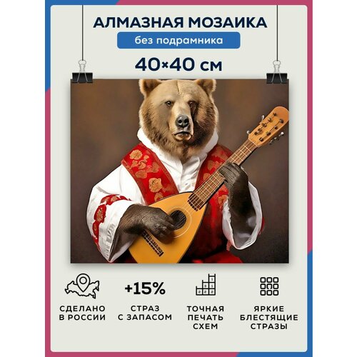 Купить Алмазная мозаика 40×40 Медведь с балалайкой без подрамника с доставкой по всей России. Алмазная мозаика 40×40 Медведь с балалайкой без подрамника: сравнение цен, характеристики, фото, актуальное наличие и цены.