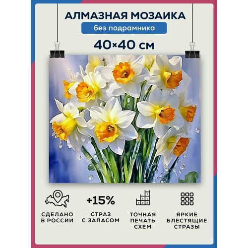 Купить Алмазная мозаика 40×40 Цветы нарцисс без подрамника с доставкой по всей России. Алмазная мозаика 40×40 Цветы нарцисс без подрамника: сравнение цен, характеристики, фото, актуальное наличие и цены.