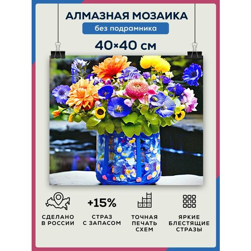 Купить Алмазная мозаика 40×40 Цветы в вазе без подрамника с доставкой по всей России. Алмазная мозаика 40×40 Цветы в вазе без подрамника: сравнение цен, характеристики, фото, актуальное наличие и цены.