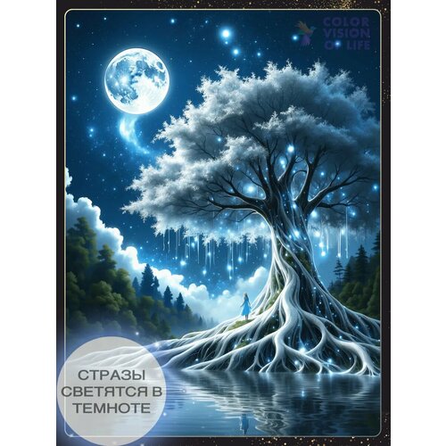 Алмазная мозаика «Дерево у озера под луной» - набор для вышивки стразами с 3D эффектом. Уникальный сюжет с секретом: днем вы наслаждаетесь красивым ночным пейзажем. Но когда гаснет свет, в озере проступает загадочный силуэт девушки, невидимый при дневном свете. Холст на подрамнике 40x50 см, стразы, инструменты - полная комплектация.