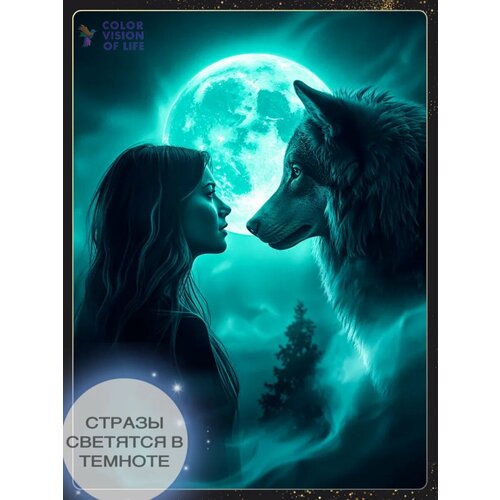 Алмазная мозаика «Девушка и волк под луной» - набор для вышивки стразами с 3D эффектом. Глубокий символичный сюжет: девушка-дух леса и могущественный волк под гипнотической полной луной. Стильная черно-бирюзовая гамма подчеркивает загадочность, глубину ночи и мистическую ауру сюжета. Полная комплектация: холст на подрамнике 40x50 см, стразы (включая люминесцентные), инструменты, подробная схема.