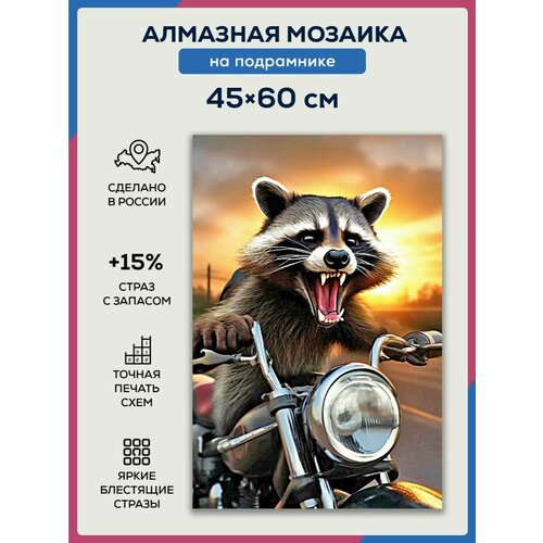 Купить Алмазная мозаика 45×60 Енот на байке на подрамнике с доставкой по всей России. Алмазная мозаика 45×60 Енот на байке на подрамнике: сравнение цен, характеристики, фото, актуальное наличие и цены.