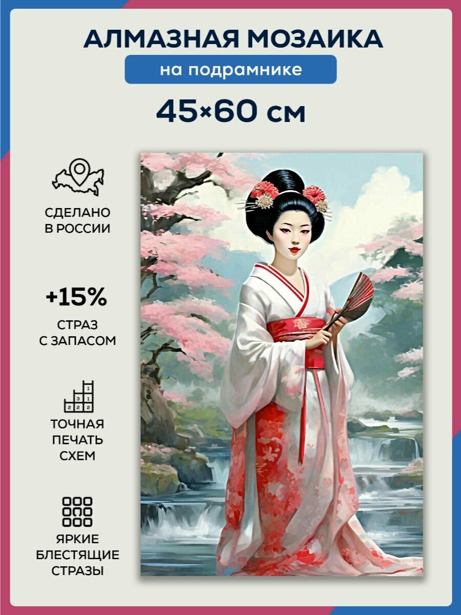 Купить Алмазная мозаика 45×60 Гейша и сакура на подрамнике с доставкой по всей России. Алмазная мозаика 45×60 Гейша и сакура на подрамнике: сравнение цен, характеристики, фото, актуальное наличие и цены.