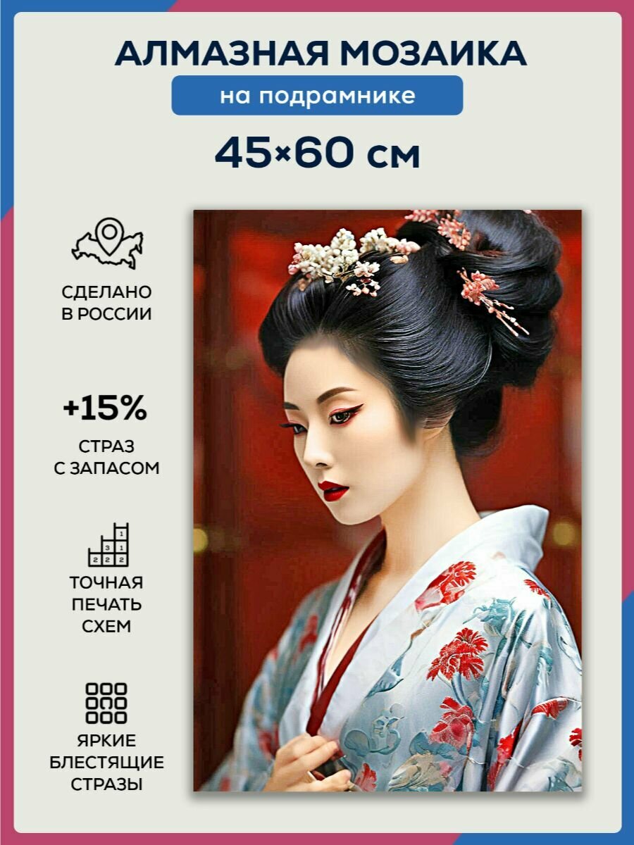 Алмазная мозаика 45×60 Гейша на подрамнике: сравнение цен, характеристики, фото, актуальное наличие и цены.