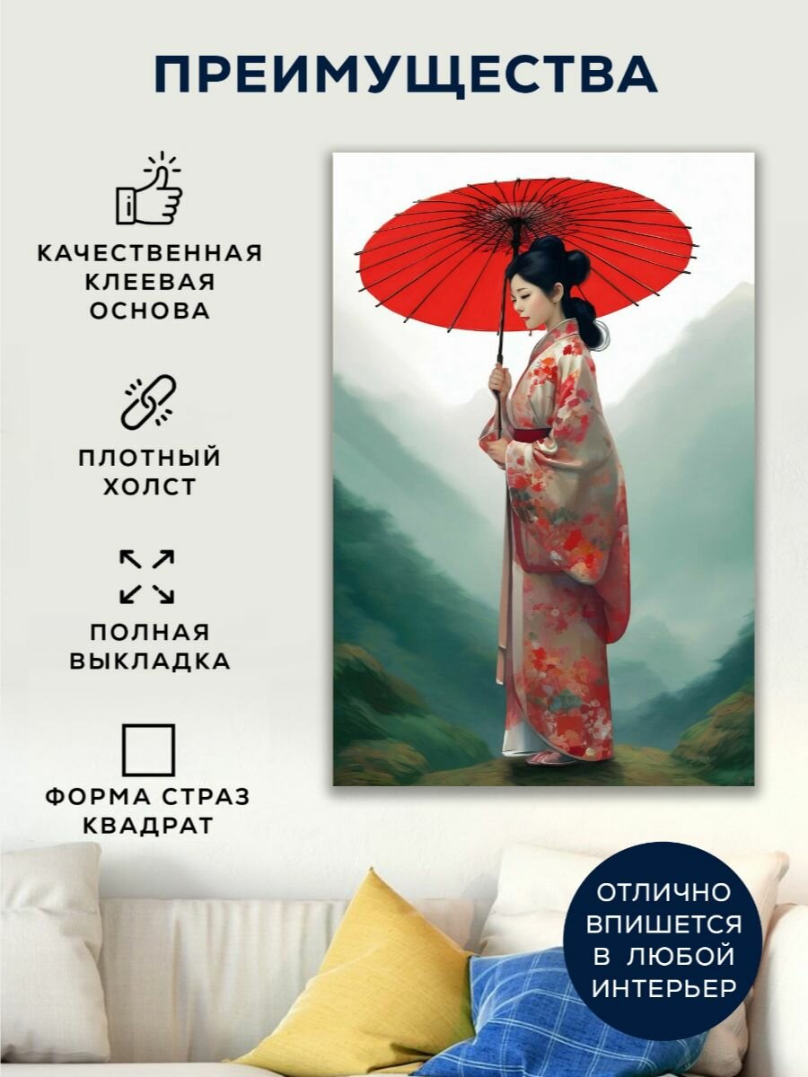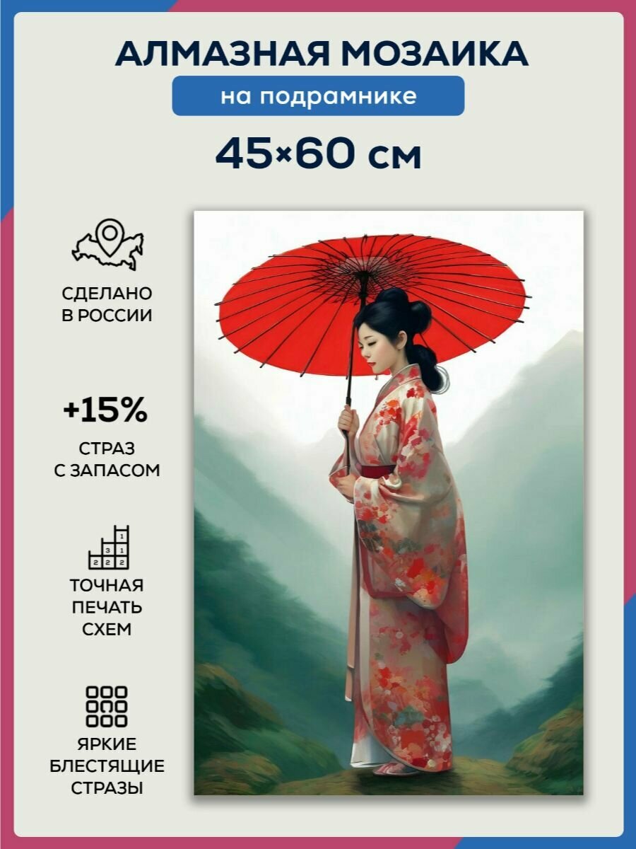 Алмазная мозаика 45×60 Гейша с зонтом на подрамнике: сравнение цен, характеристики, фото, актуальное наличие и цены.
