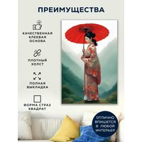 Купить Алмазная мозаика 45×60 Гейша с зонтом на подрамнике с доставкой по всей России.