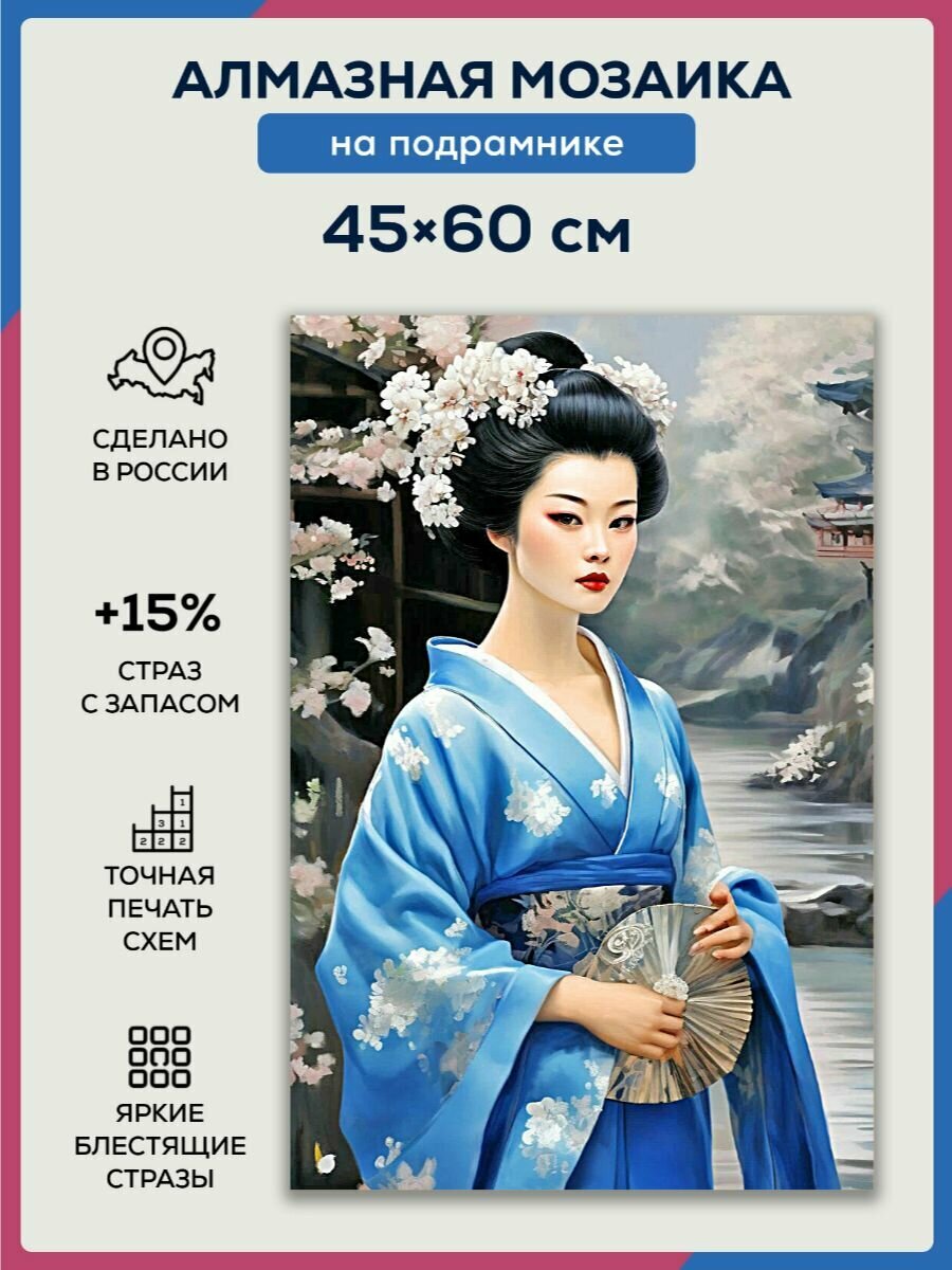 Купить Алмазная мозаика 45×60 Гейша в голубом на подрамнике с доставкой по всей России. Алмазная мозаика 45×60 Гейша в голубом на подрамнике: сравнение цен, характеристики, фото, актуальное наличие и цены.
