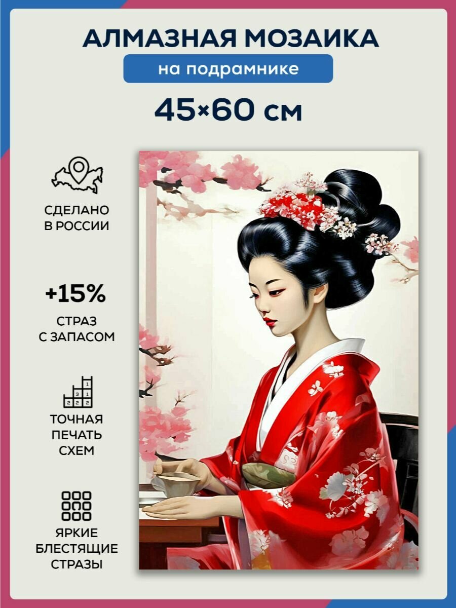 Купить Алмазная мозаика 45×60 Гейша за чаем на подрамнике с доставкой по всей России. Алмазная мозаика 45×60 Гейша за чаем на подрамнике: сравнение цен, характеристики, фото, актуальное наличие и цены.