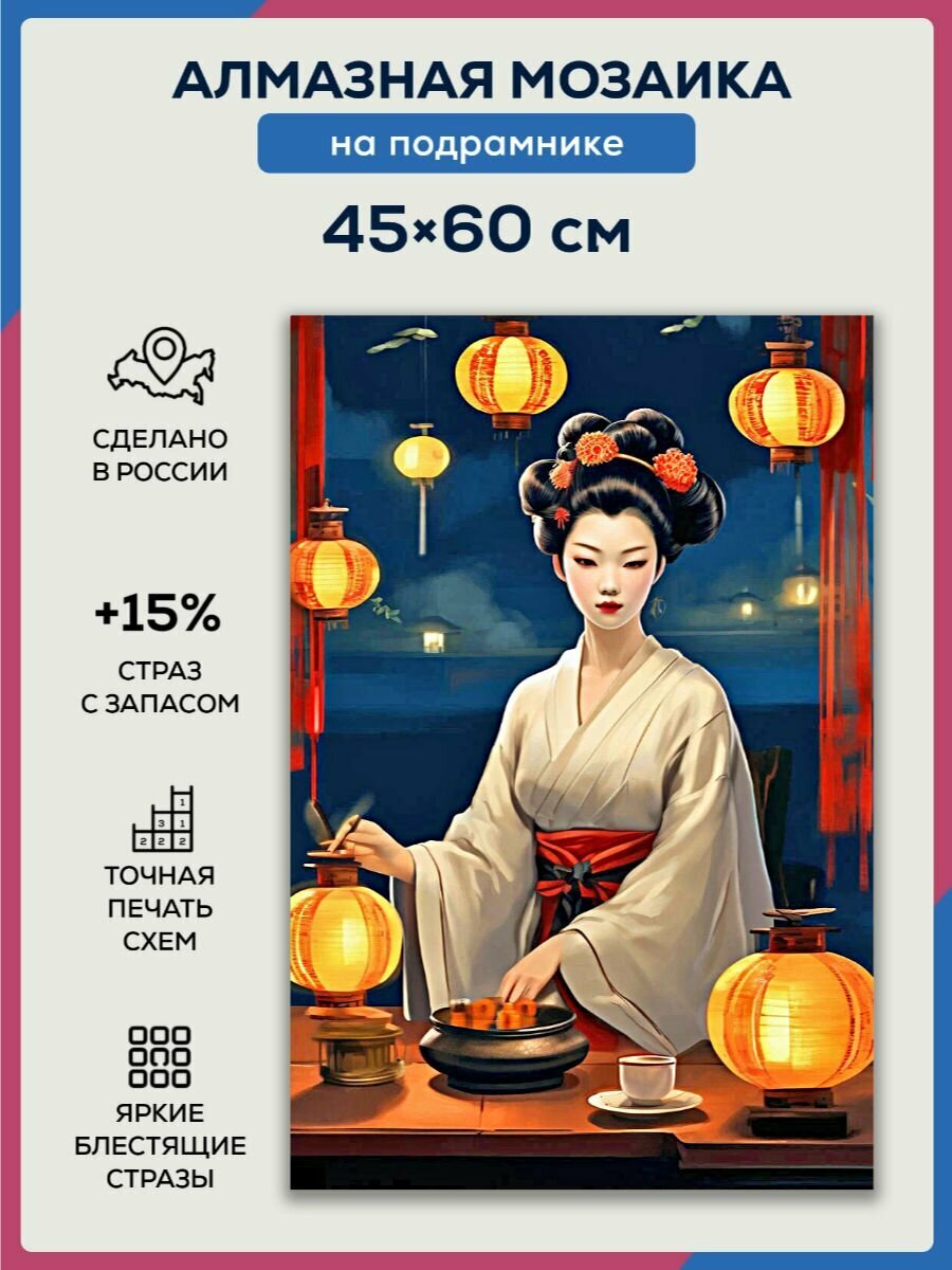 Купить Алмазная мозаика 45×60 Гейша за ужином на подрамнике с доставкой по всей России. Алмазная мозаика 45×60 Гейша за ужином на подрамнике: сравнение цен, характеристики, фото, актуальное наличие и цены.
