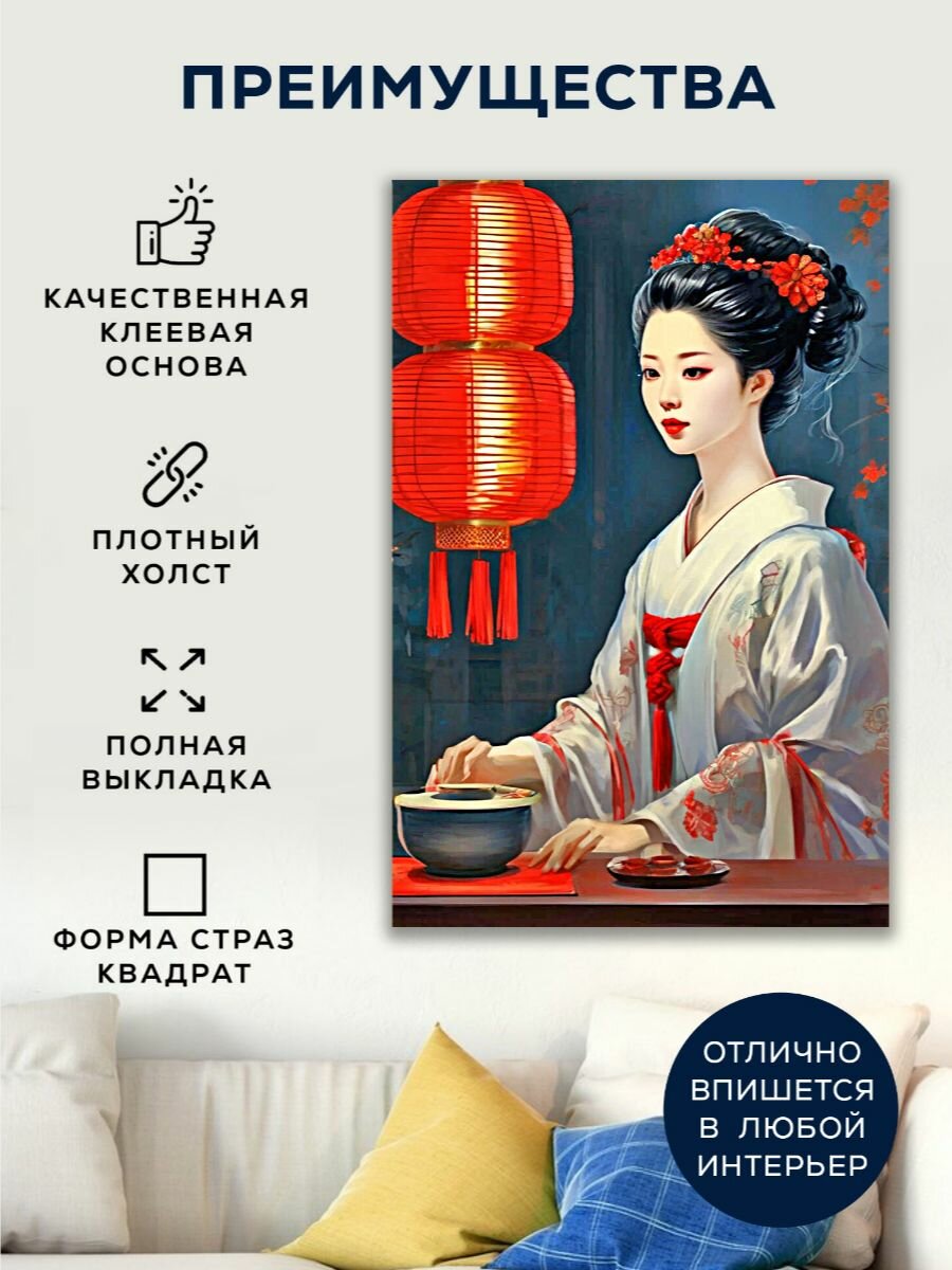 Купить Алмазная мозаика 45×60 Гейша за ужином на подрамнике с доставкой по всей России.