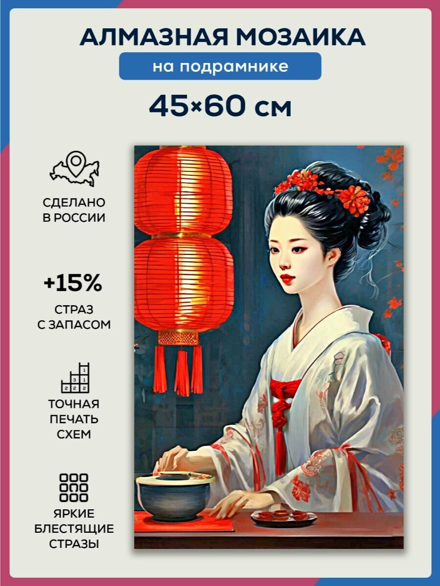 Алмазная мозаика 45×60 Гейша за ужином на подрамнике: сравнение цен, характеристики, фото, актуальное наличие и цены.
