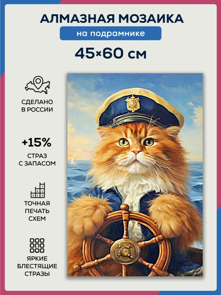 Купить Алмазная мозаика 45×60 Кот — капитан на подрамнике с доставкой по всей России. Алмазная мозаика 45×60 Кот — капитан на подрамнике: сравнение цен, характеристики, фото, актуальное наличие и цены.