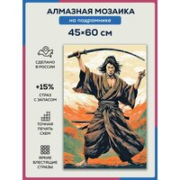 Алмазная мозаика 45×60 Самурай с катаной на подрамнике