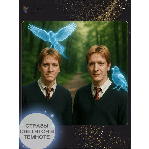 Алмазная мозаика «Двойное волшебство» - набор для вышивки стразами с 3D эффектом. Легендарные Фред и Джордж Уизли со своими патронусами в виде сорок - символ остроумия и магии. Светящиеся стразы создают эффект мерцающих патронусов, сияющих в ночи. Холст на подрамнике 50x40 см, стразы, инструменты - полная комплектация.