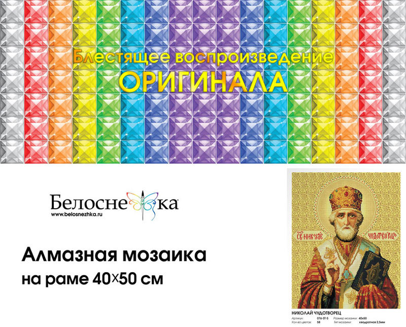 Алмазная мозаика Белоснежка «Николай Чудотворец» / 40х50 см / На подрамнике: сравнение цен, характеристики, фото, актуальное наличие и цены.
