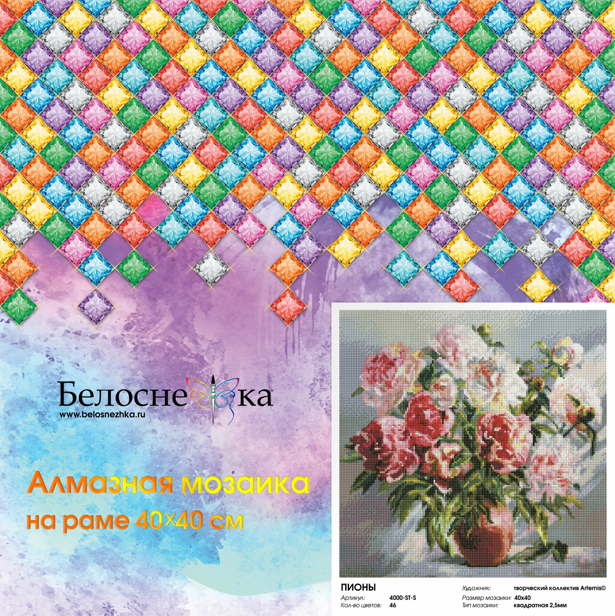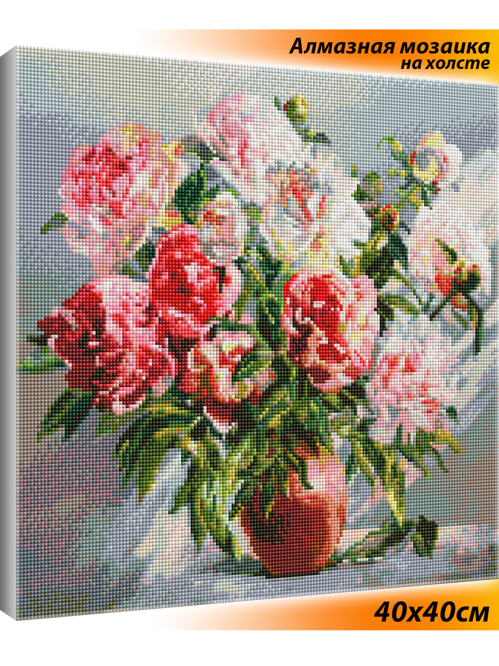 Купить Алмазная мозаика Белоснежка «Пионы» / Набор алмазной мозаики 40х40см / На подрамнике / Полная выкладка с доставкой по всей России.