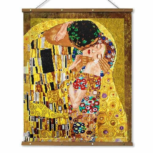 Алмазная мозаика «Поцелуй Климта » LZDS001 на рейках (без подрамника, частичная выкладка) - это набор для выкладывания картины алмазной мозаикой согласно схеме нанесённой на холст. На холст размером 56 на 70 см, на деревянных рейках, нанесён клеевой слой и напечатана схема для выкладки. Все области промаркированы и каждый маркер соответствует определенному цвету мозаики. Все, что нужно сделать - нанести специальным стилусом мозаику на область размеченную для этого цвета. Все цвета заранее подобраны профессиональными художниками.