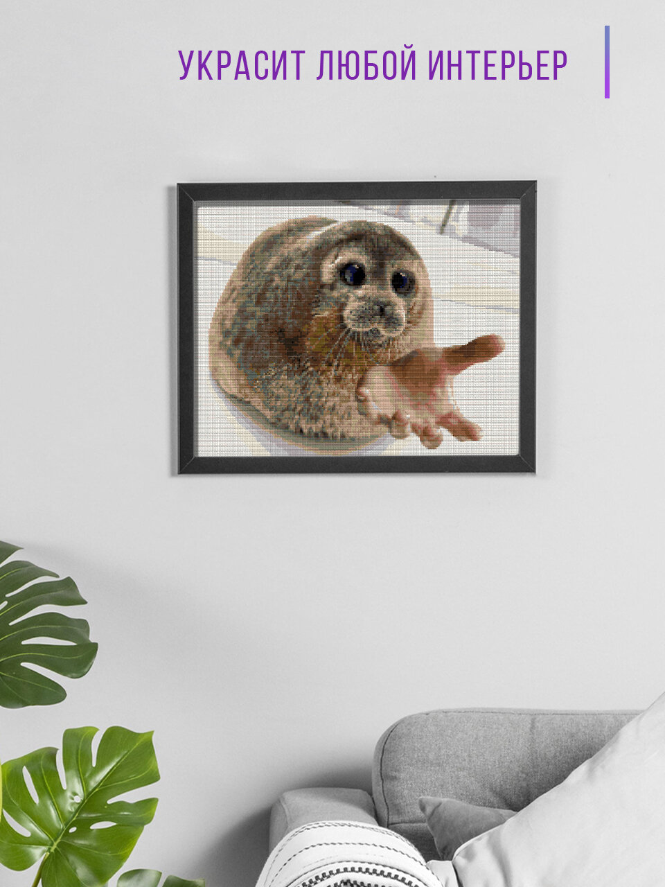 Купить Алмазная мозаика без подрамника — вышивка Мем нерпа просит 40 х 50 см с доставкой по всей России.
