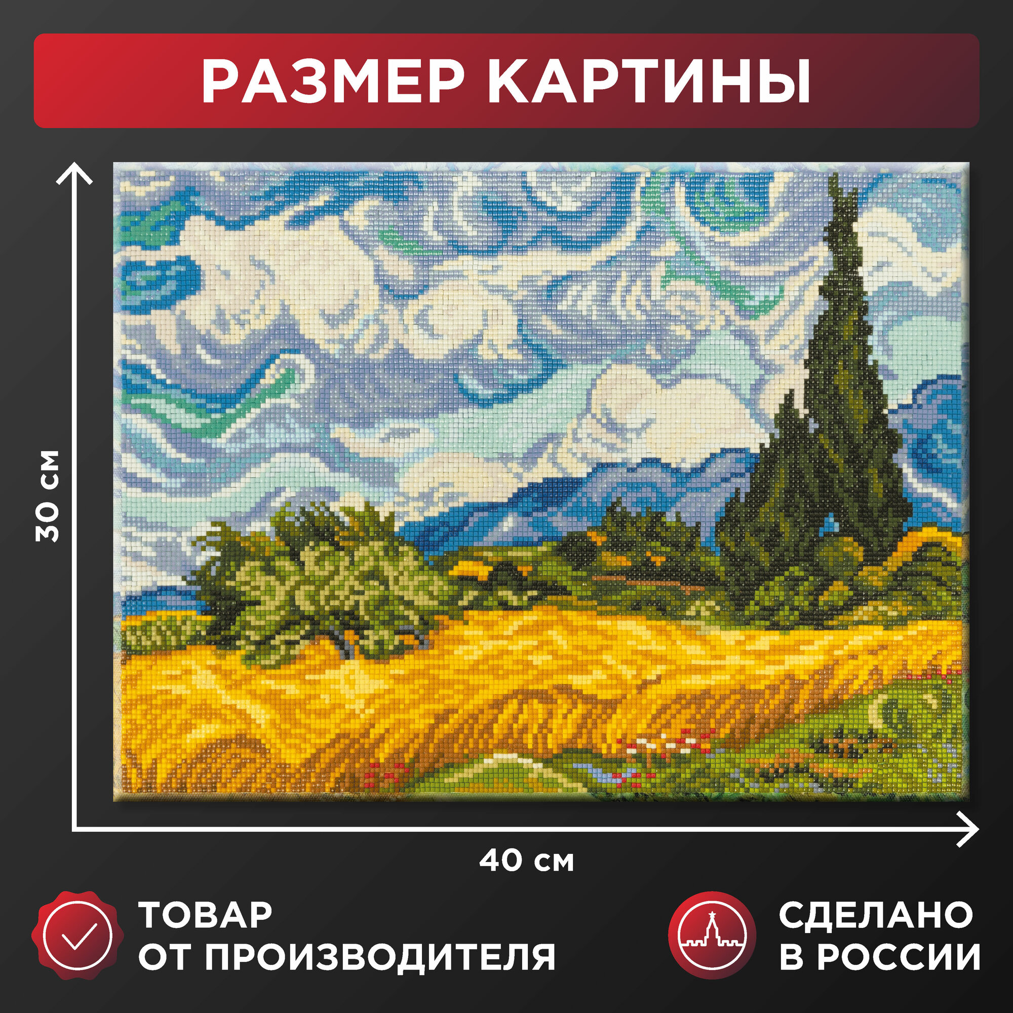 Алмазная мозаика на подрамнике 30 х 40 см «фрея» «Пшеничное поле с кипарисами, Винсент ван Гог» MET-ALPD-025: сравнение цен, характеристики, фото, актуальное наличие и цены.