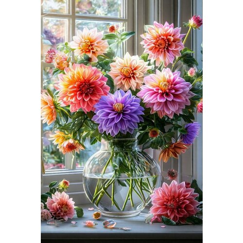 Алмазная мозаика на подрамнике "Букет разноцветных георгин" - это не только увлекательное занятие, но и возможность создать уникальное украшение для вашего интерьера.