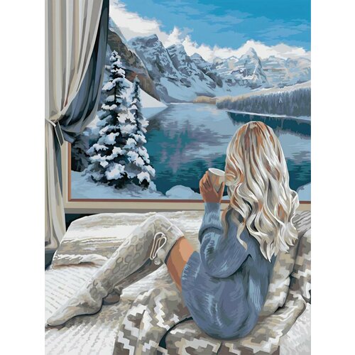 Алмазная мозаика на подрамнике "Девушка в синем свитере смотрит в зимнее окно" от BoomBoomShop - это уникальный и увлекательный способ провести время.