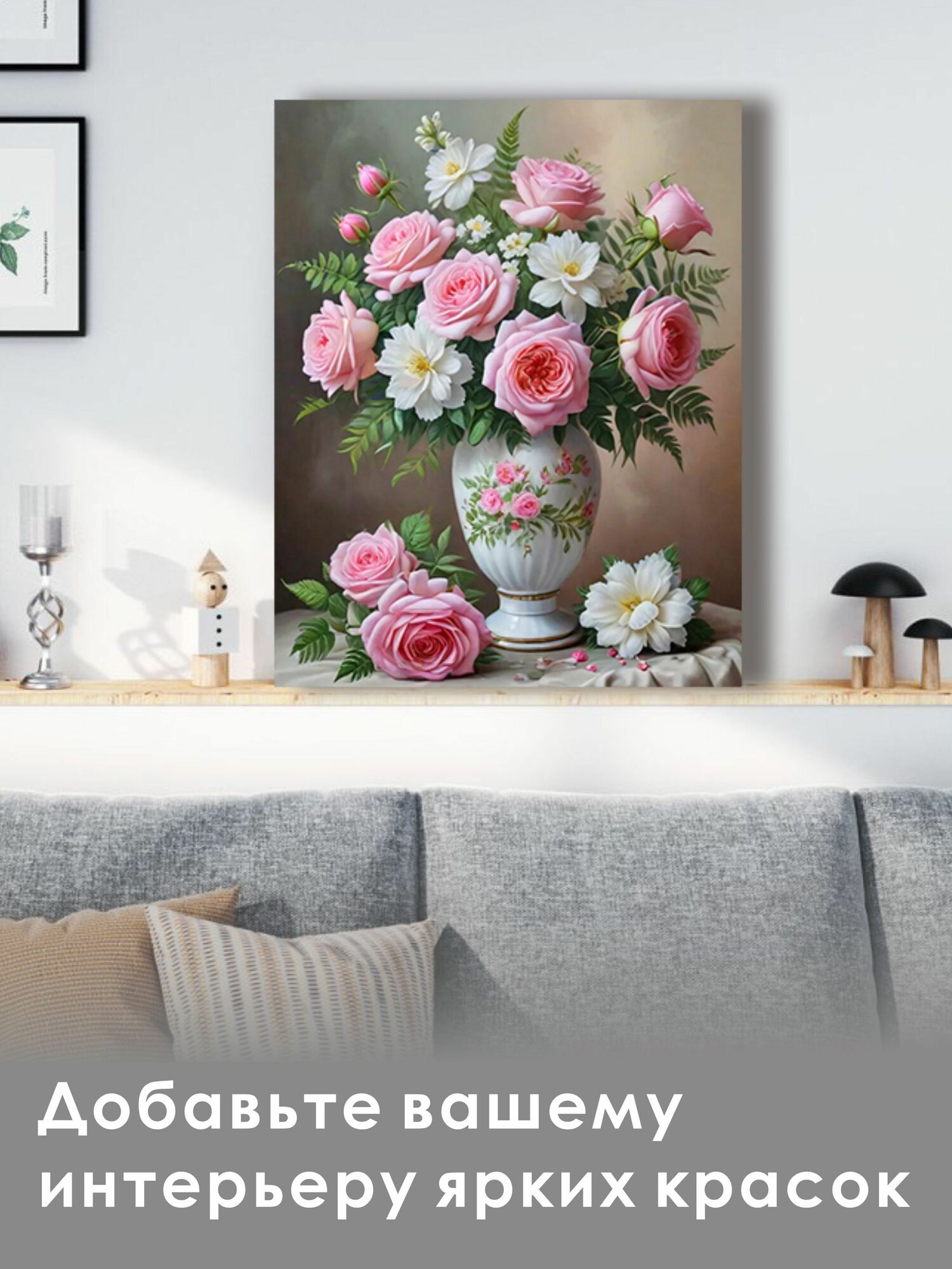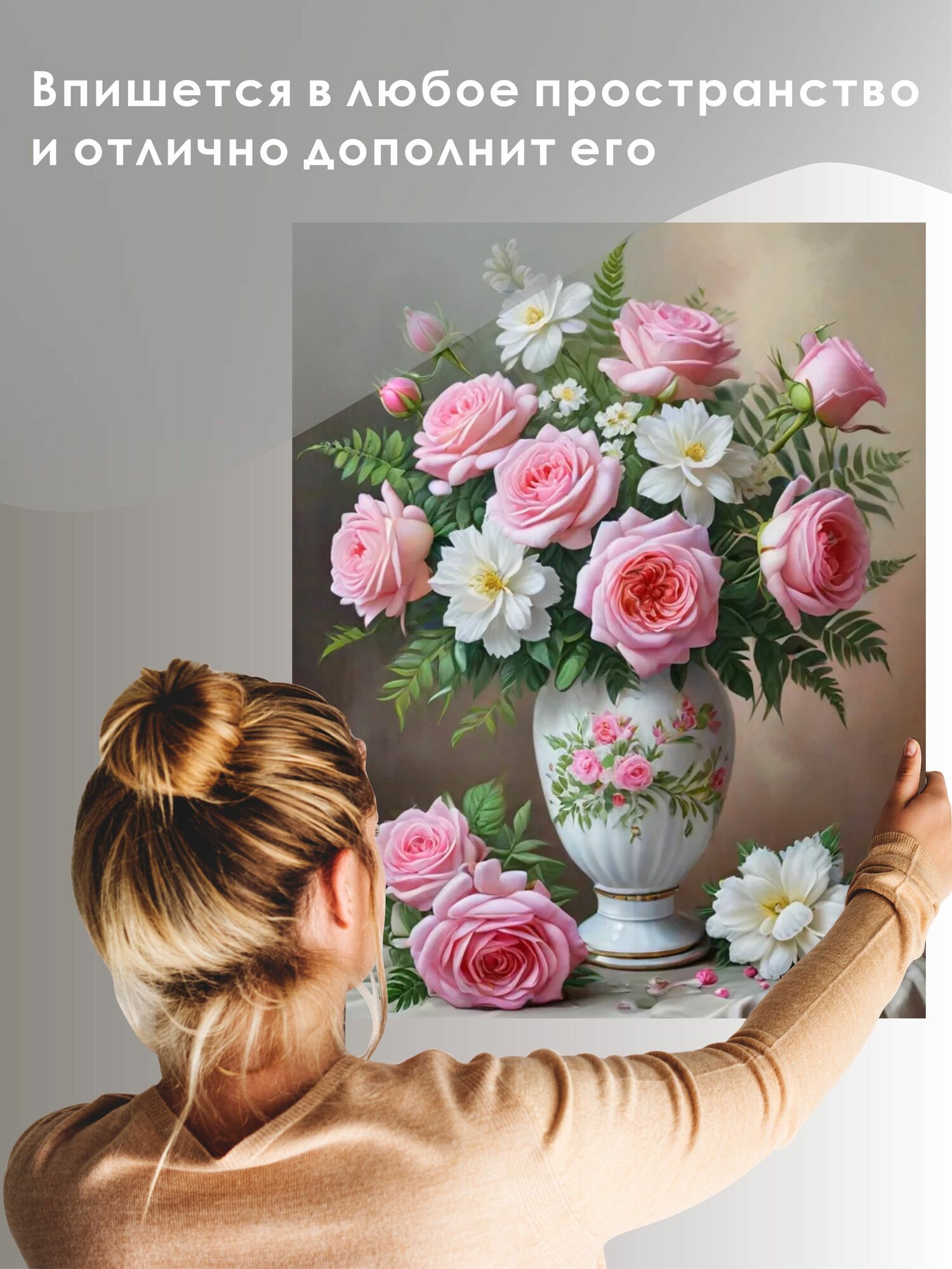 Купить Алмазная мозаика на подрамнике Букет нежных роз 40х50 с доставкой по всей России.