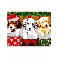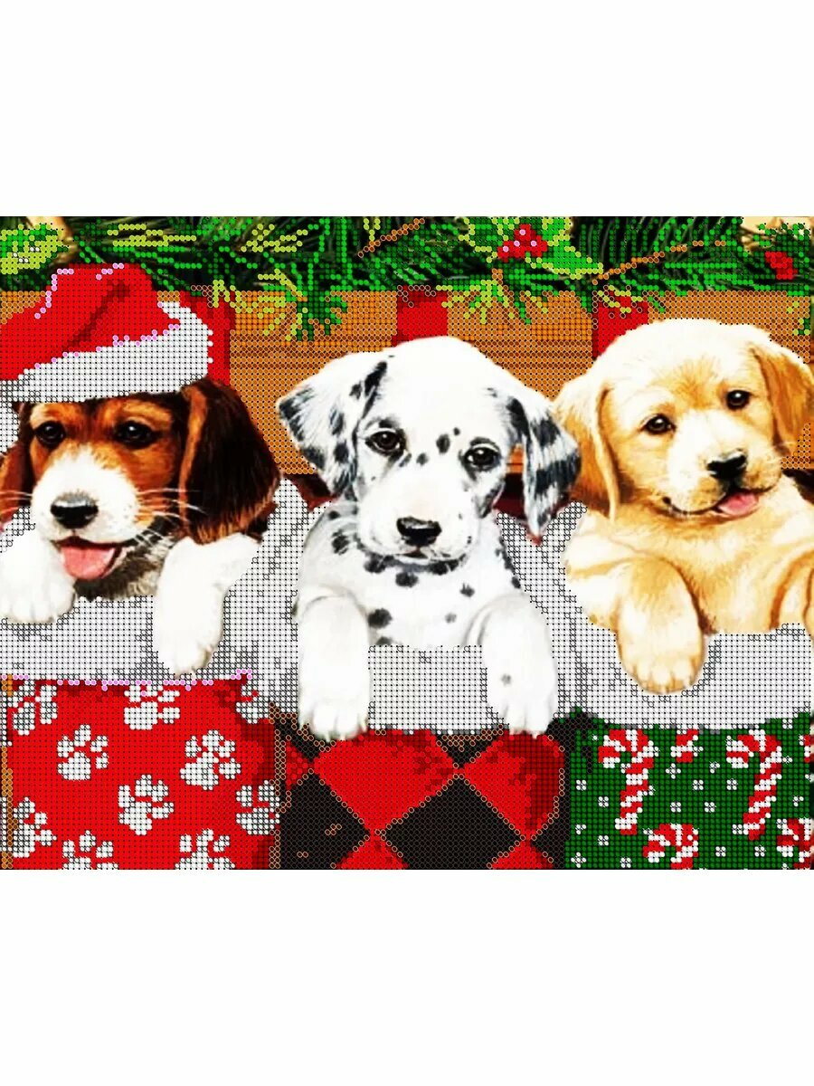 Алмазная мозаика набор Диамант картина стразами Новогодние щенки 38*30см
