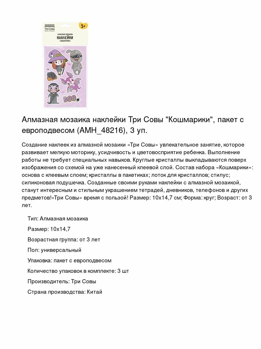 Алмазная мозаика наклейки Три Совы «Кошмарики», пакет с европодвесом (АМН_48216), 3 уп.: сравнение цен, характеристики, фото, актуальное наличие и цены.