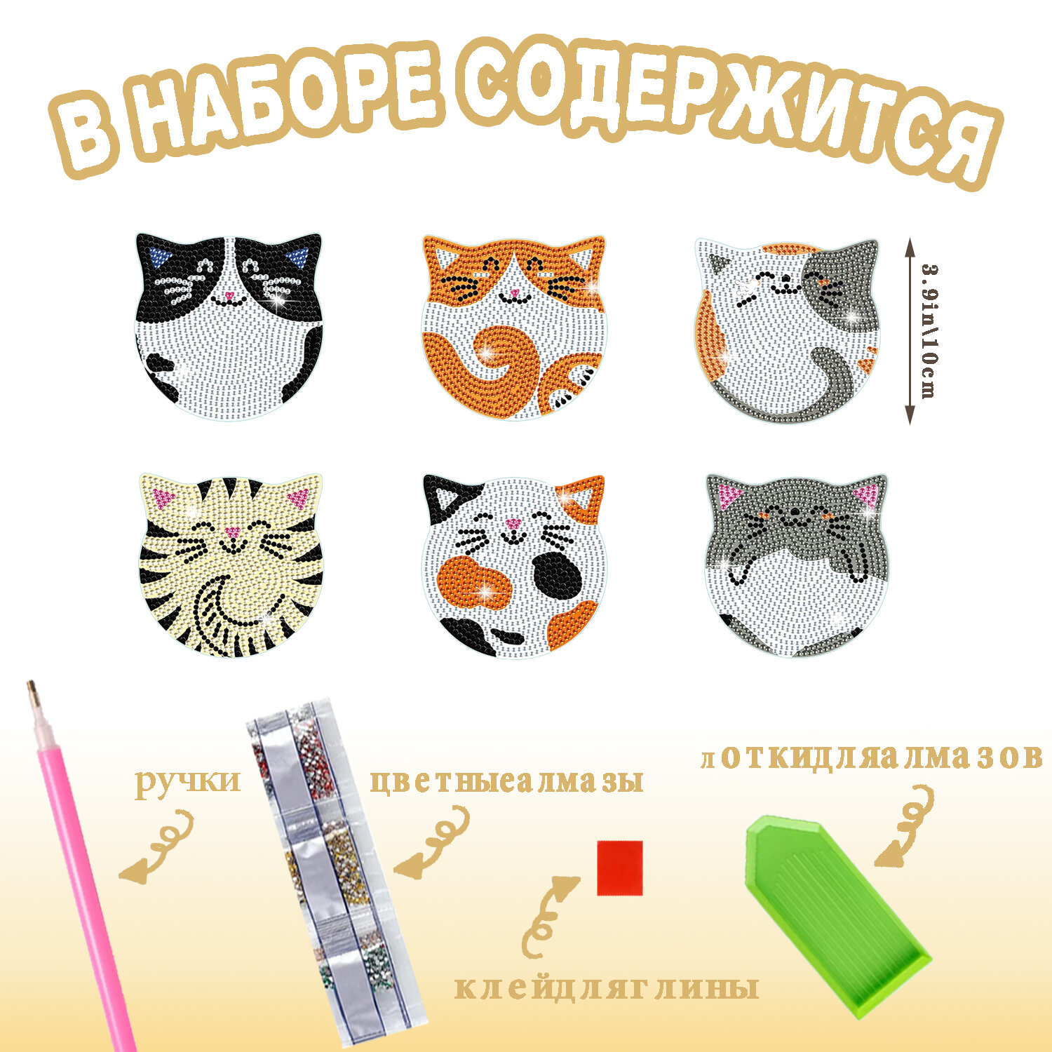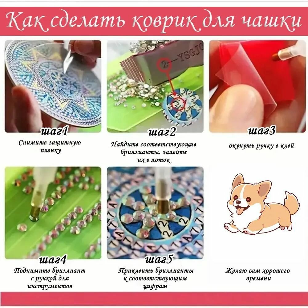 Алмазная мозаика Подставки под стакан 6шт / картина стразами/Кошка: сравнение цен, характеристики, фото, актуальное наличие и цены.