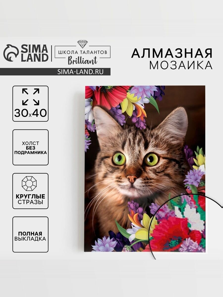 Купить Алмазная мозаика с полным заполнением Школа талантов «Кот в цветах» 30х40 см, холст, вышивка стразами, для взрослых и детей с доставкой по всей России. Алмазная мозаика с полным заполнением Школа талантов «Кот в цветах» 30х40 см, холст, вышивка стразами, для взрослых и детей: сравнение цен, характеристики, фото, актуальное наличие и цены.