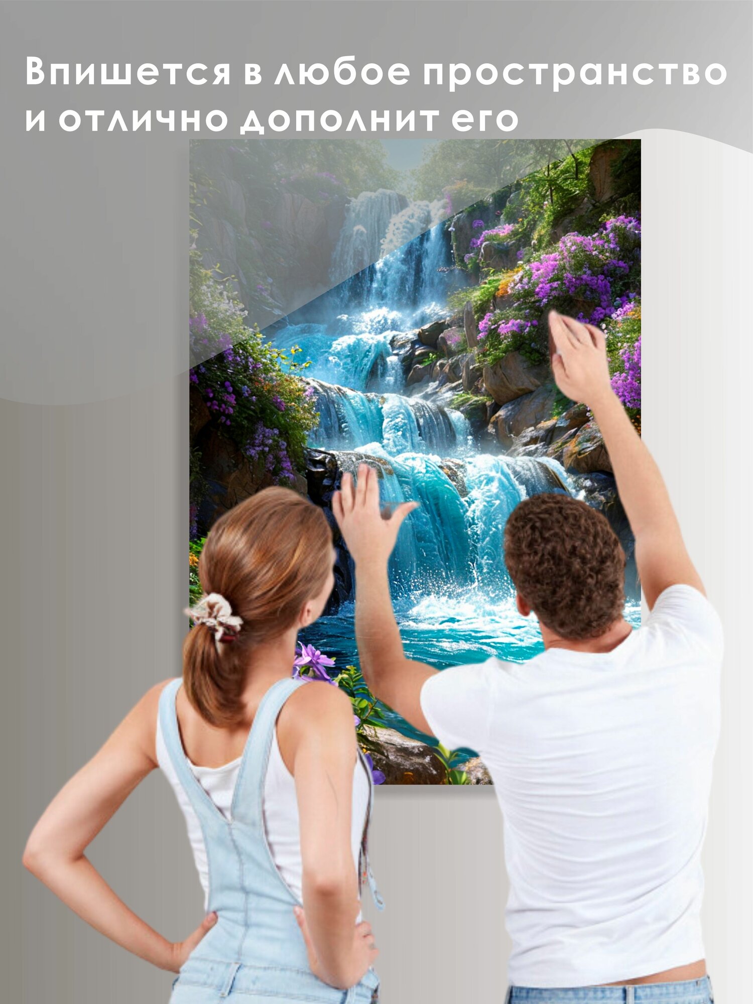 Купить Алмазная мозаика Цветы у водопада 70х100 без подрамника с доставкой по всей России.
