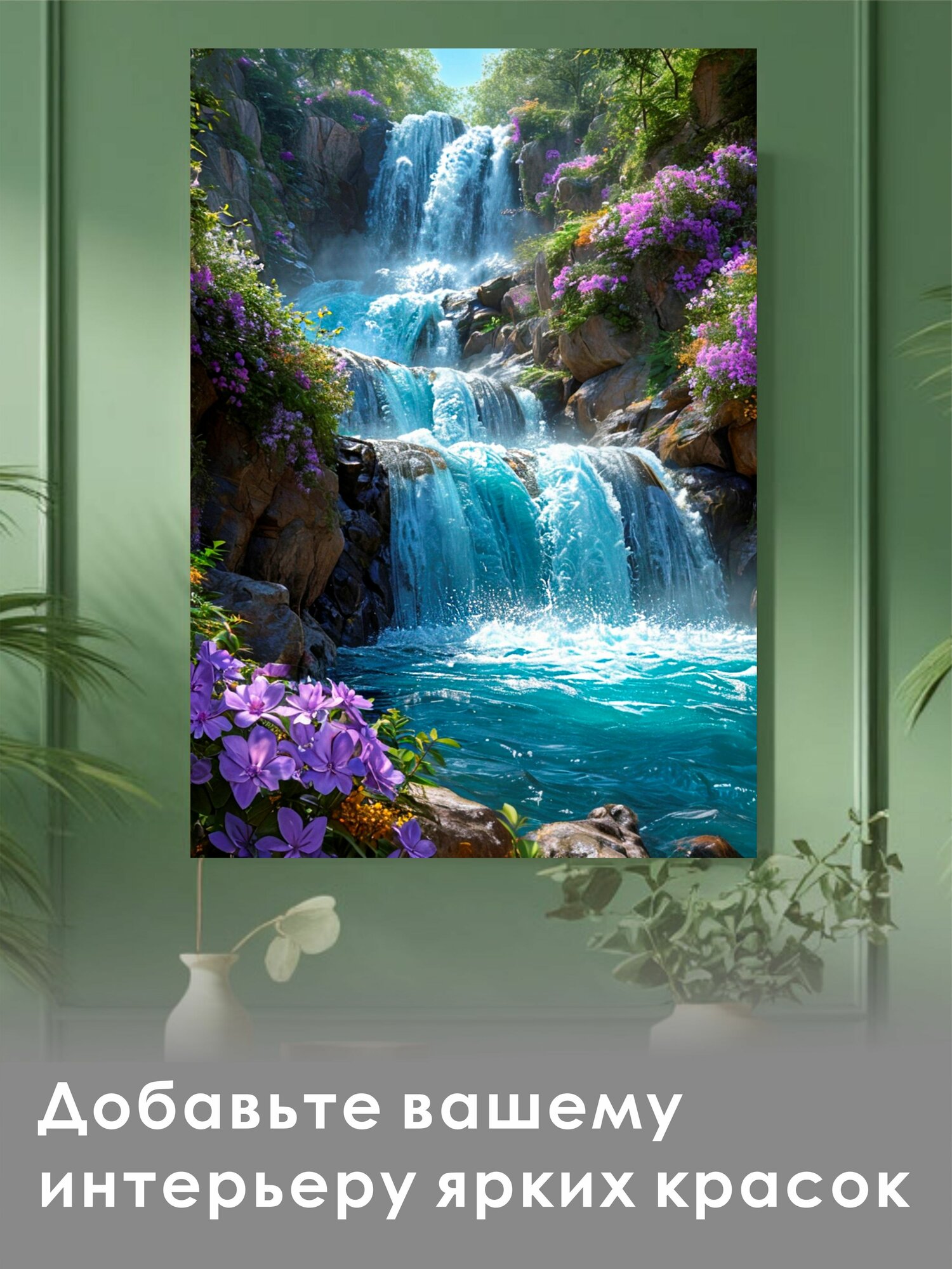 Алмазная мозаика Цветы у водопада 70х100 без подрамника: сравнение цен, характеристики, фото, актуальное наличие и цены.
