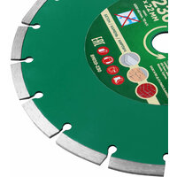 Технические характеристики: Тип: алмазный круг сегментный для сухой резки асфальтового полотна, бетона, гранита, кирпича, камня и других твердых материалов. Высокая скорость резания, точная резка. Сухой рез; Диаметр, мм: 230; Посадка, мм: 22.2; Оборотов в минуту (RPM): 6 500; Максимальная окружная скорость, м/с: 70; Высота алмазного слоя, мм: 7,5; Толщина реза, мм: 2.6; Количество в упаковке, шт: 1; Упаковка: индивидуальная картонная упаковка с отверстием под крюк; Сертификат: декларация о соответствии еаэс N RU Д-CY. РА01. В.64439/21;