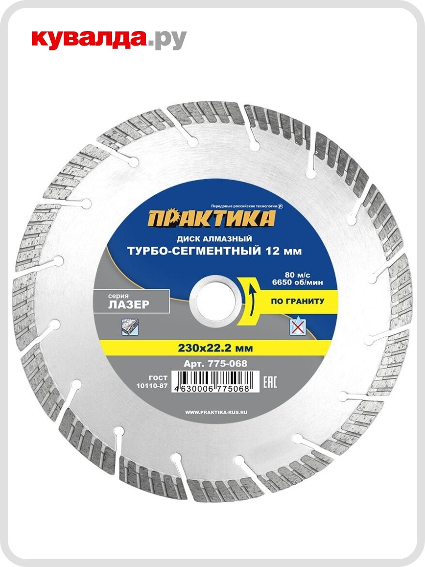 Алмазный диск для резки гранита ПРАКТИКА «Лазер турбосегментный 230х22 мм, сегмент 12мм: сравнение цен, характеристики, фото, актуальное наличие и цены.