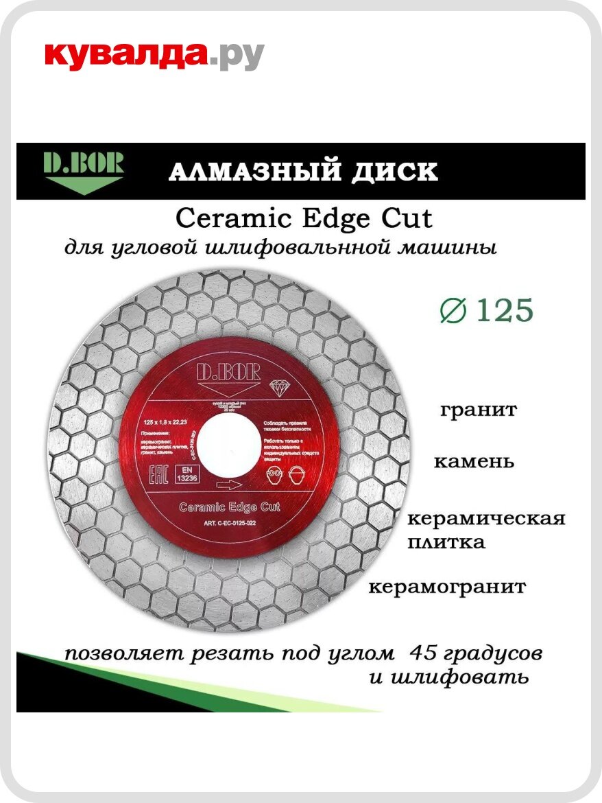 Алмазный диск для резки керамики D.BOR Ceramic Edge Cut 125×1,8×22,23 мм: сравнение цен, характеристики, фото, актуальное наличие и цены.