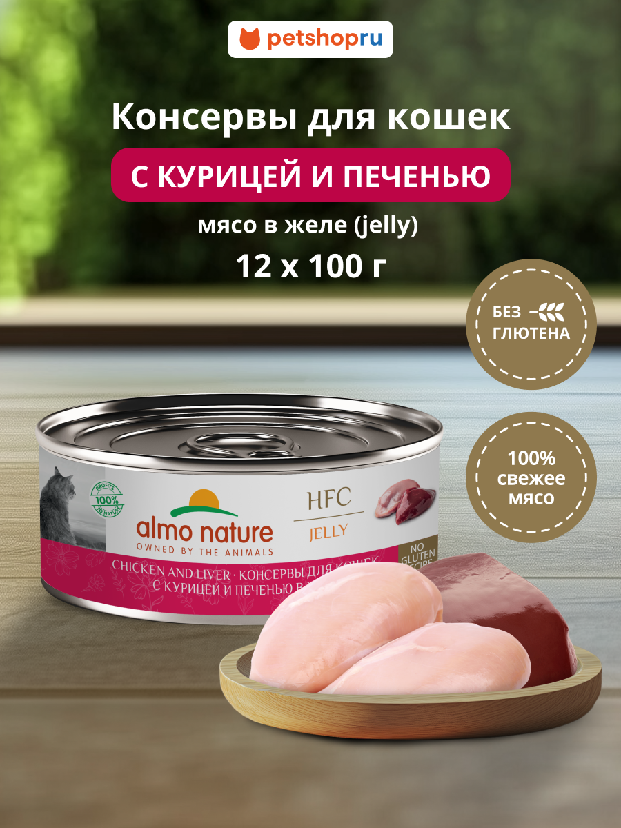 Almo Nature Консервы для кошек и котят с курицей и печенью в желе (HFC, Jelly, Chicken and Liver), Влажный корм, 12х100 г: сравнение цен, характеристики, фото, актуальное наличие и цены.