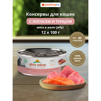 Купить Almo Nature Консервы для кошек и котят с лососем и тунцом в желе (HFC, Jelly, Salmon and Tuna), Влажный корм, 12х100 г с доставкой по всей России.