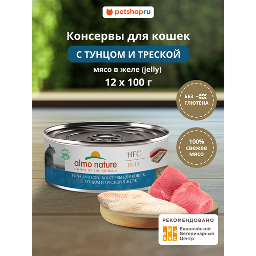Купить Almo Nature Консервы для кошек и котят с тунцом и треской в желе (HFC, Jelly, Tuna and Cod), Влажный корм, 12х100 г с доставкой по всей России. Almo Nature Консервы для кошек и котят с тунцом и треской в желе (HFC, Jelly, Tuna and Cod), Влажный корм, 12х100 г: сравнение цен, характеристики, фото, актуальное наличие и цены.