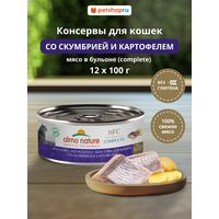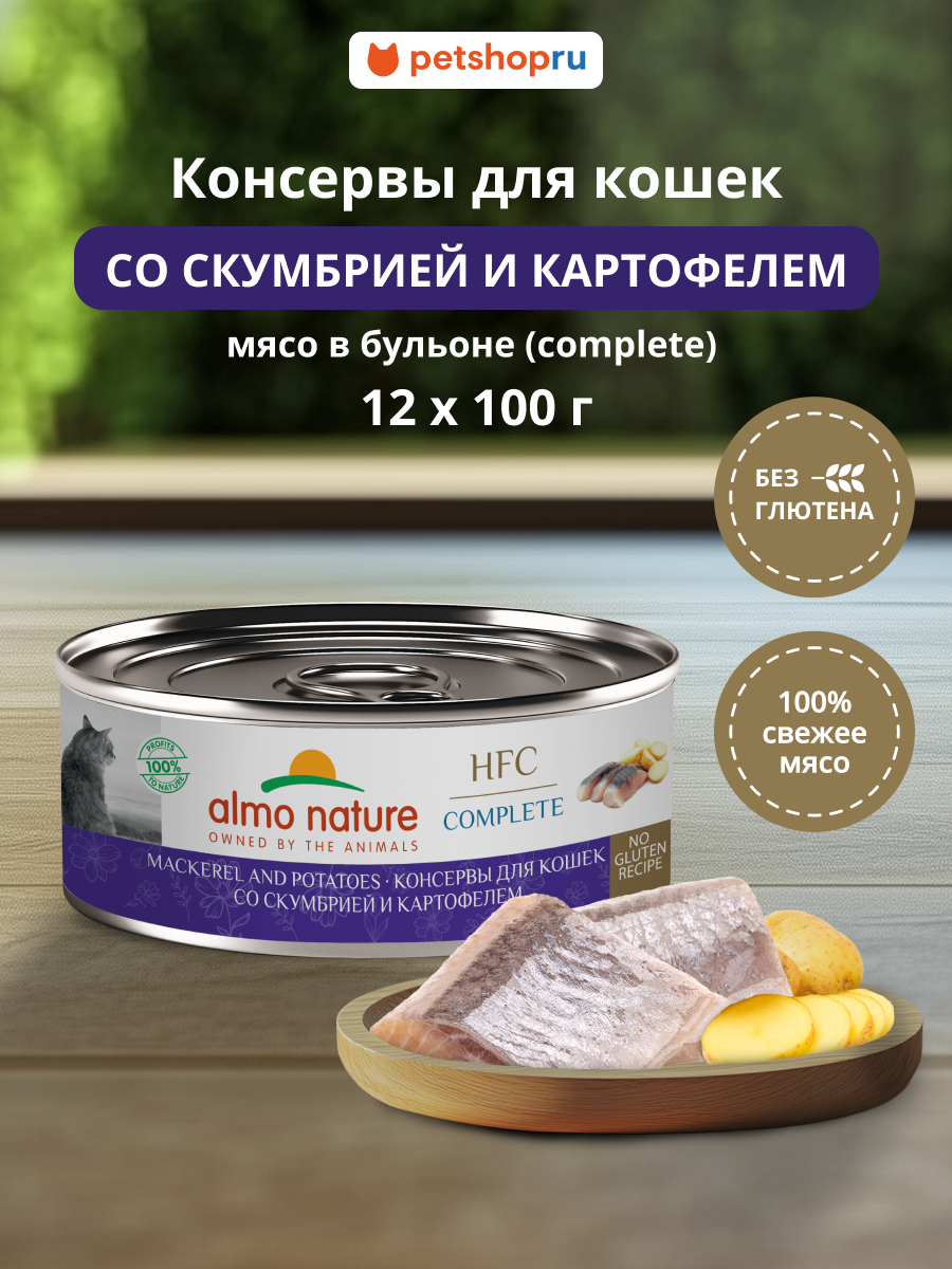 Almo Nature Консервы для кошек и котят со скумбрией и картофелем в бульоне (HFC, Complete, Mackerel and Potatoes), Влажный корм, 12х100 г: сравнение цен, характеристики, фото, актуальное наличие и цены.