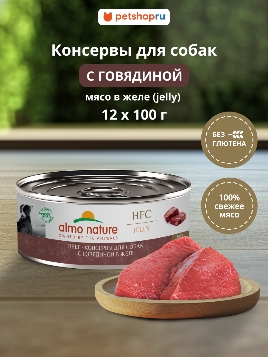Almo Nature Консервы для собак и щенков с говядиной в желе (HFC, Jelly, Beef), Влажный корм, 12х100 г: сравнение цен, характеристики, фото, актуальное наличие и цены.