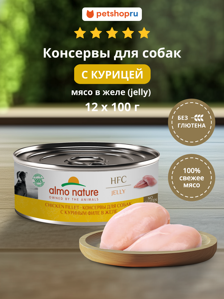 Almo Nature Консервы для собак и щенков с куриным филе в желе (HFC, Jelly, Chicken Fillet), Влажный корм, 12х100 г: сравнение цен, характеристики, фото, актуальное наличие и цены.