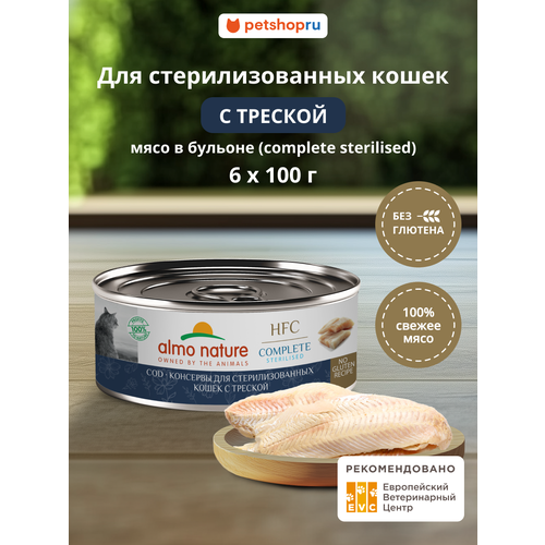 Купить Almo Nature Консервы для стерилизованных кошек с треской в бульоне (HFC, Complete Sterilised, Cod), Влажный корм, 6х100 г с доставкой по всей России. Almo Nature Консервы для стерилизованных кошек с треской в бульоне (HFC, Complete Sterilised, Cod), Влажный корм, 6х100 г: сравнение цен, характеристики, фото, актуальное наличие и цены.