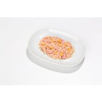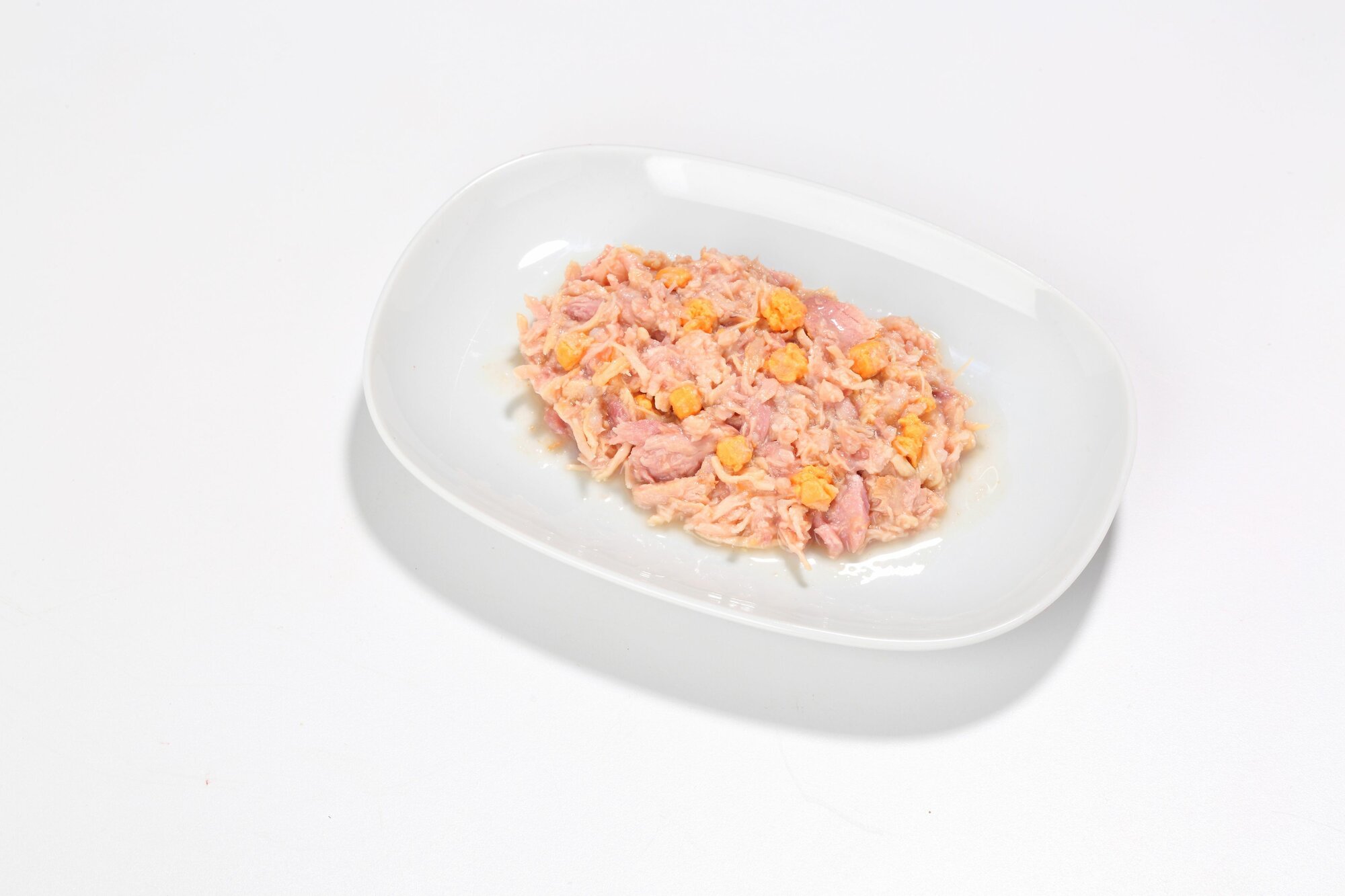 Линейка от Almo Nature – консервированный корм Legend содержит до 55 % высококачественного мяса или рыбы, приготовленных в собственном бульоне (до 24%). Новый рецепт приготовления позволяет сохранить все полезные свойства и питательные вещества, необходимые для здоровья кошек. В составе только свежее мясо животных свободного выгула – без гормонов и антибиотиков. Высокое качество и природная свежесть корма придает неповторимый аромат, который так манит кошек. Консервированный корм представляет собой цельные кусочки мяса или рыбы, что приближает корм к естественной пище. Кошки по природе являются хищниками, и такое исполнение блюда позволяет сохранить им охотничьи инстинкты. Ингредиенты: рыбный бульон 42%, тунец 25%, курица 25%, сыр 5%, рис 3%. Питательная ценность: Белки 14% Клетчатка 0,1% Жиры 0,3% Зола 1,5% Влага 84%.