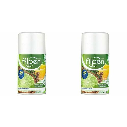 Освежитель воздуха «ALPEN fresh» серии «Vert» Сменный универсальный аэрозольный баллон для автоматических систем дезодорации воздуха. Специально разработанная формула «Alpen fresh» обеспечивает максимальную защиту от неприятного запаха, надолго наполняя помещение нежным тонким ароматом. Дополнительная информация подходит для большинства автоматических устройств В комплекте 2 штуки.