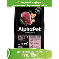 Корм сухой для щенков крупных пород с говядиной и рубцом AlphaPet Superpremium 12кг: сравнение цен, характеристики, фото, актуальное наличие и цены.