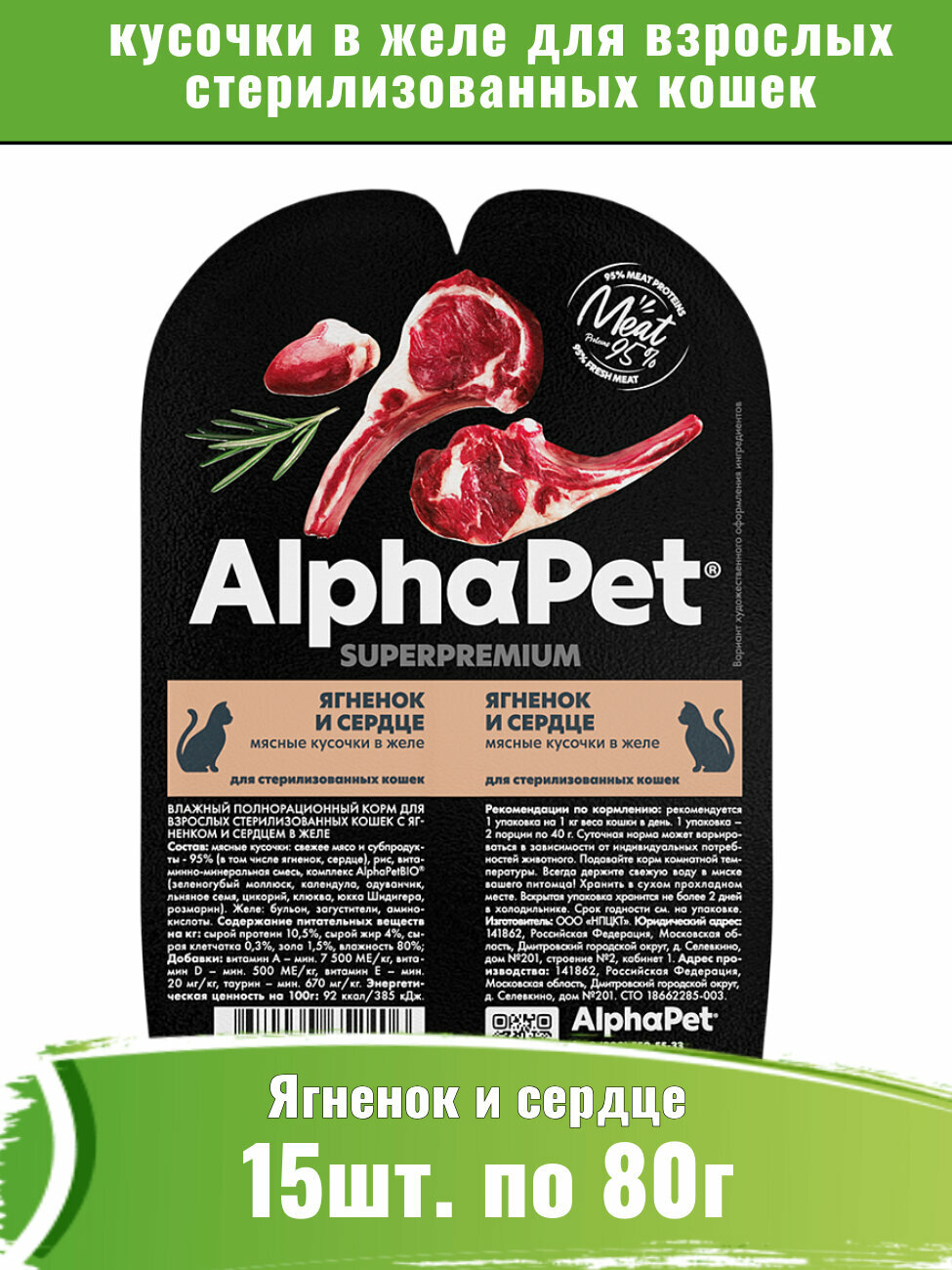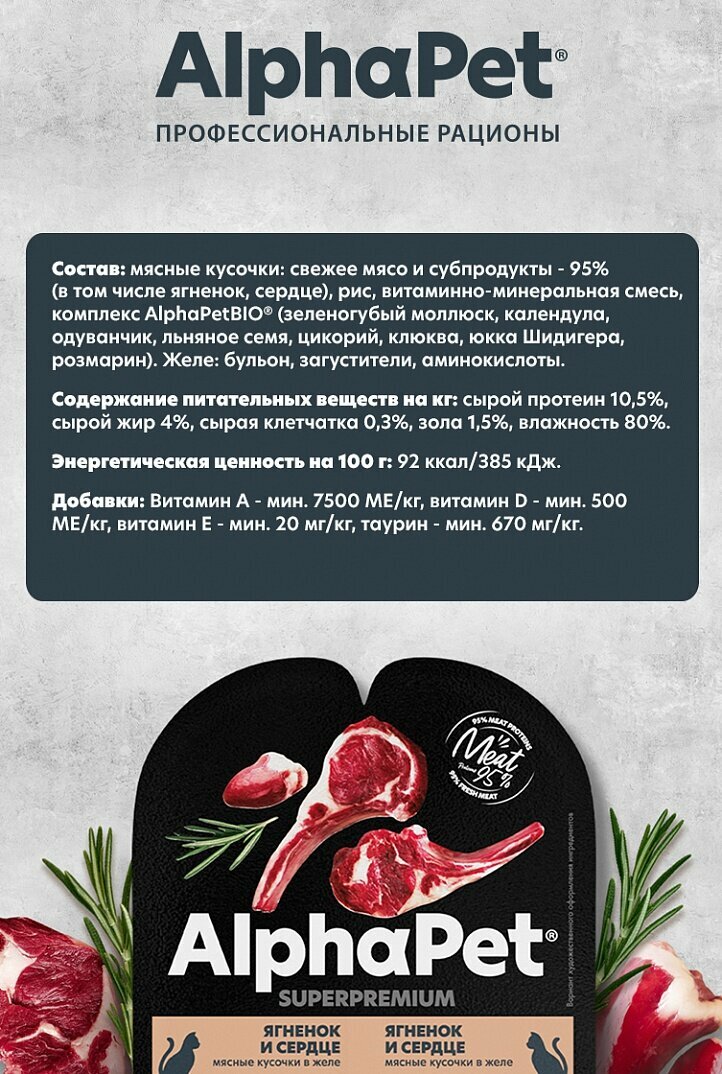 Купить Корм для стерилизованных кошек AlphaPet Superpremium 15шт, ягненок и сердце мясные кусочки в желе с доставкой по всей России. Корм для стерилизованных кошек AlphaPet Superpremium 15шт, ягненок и сердце мясные кусочки в желе: сравнение цен, характеристики, фото, актуальное наличие и цены.