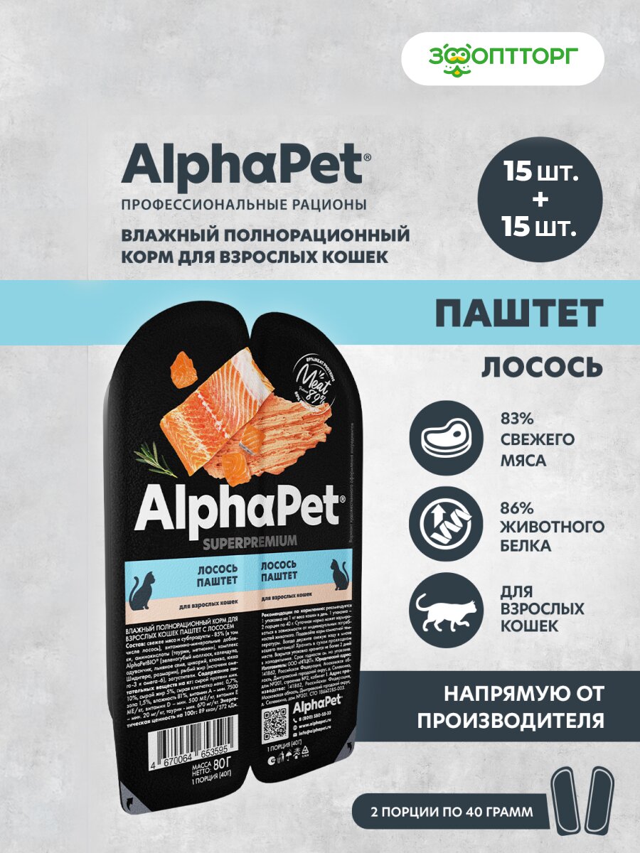 Купить Влажный корм AlphaPet Superpremium пауч для взрослых кошек (паштет) Лосось, 80 г х 30 шт. с доставкой по всей России. Влажный корм AlphaPet Superpremium пауч для взрослых кошек (паштет) Лосось, 80 г х 30 шт.: сравнение цен, характеристики, фото, актуальное наличие и цены.