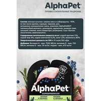 Здоровый и активный питомец – главная задача каждого хозяина. Команда AlphaPet® создает и производит полезные корма высшей категории качества Holistiс, давая возможность каждому владельцу быть уверенным в правильном выборе кормления для своего животного. ¶AlphaPet® SUPERPREMIUM - суперпремиальное питание на основе натуральных ингредиентов. Линейка питания для животных, владельцы которых хотят быть уверены в лучшем выборе корма для своего питомца. Максимально открытый и понятный состав продукта, приготовленного по инновационной технологии из свежего мяса и с содержанием более чем 90% мясного белка!¶Линейка влажных кормов AlphaPet так же содержит:¶Ингредиенты качества Human Graid¶Уникальный комплекс AlphaPetBio ¶Рис - для чувствительного пищеварения¶*Не содержит ГМО искусственных красителей, ароматизаторов, консервантов, пшеницу, кукурузу и глютен.
