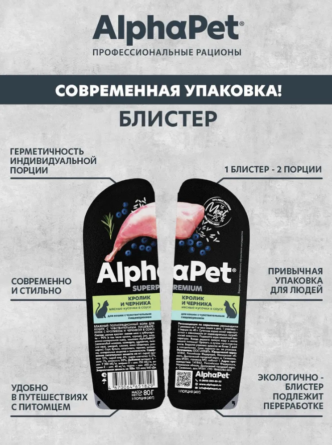 Купить ALPHAPET SUPERPREMIUM 80 гр ламистер влажный корм для кошек с чувствительным пищеварением кролик и черника 1х15 с доставкой по всей России. ALPHAPET SUPERPREMIUM 80 гр ламистер влажный корм для кошек с чувствительным пищеварением кролик и черника 1х15: сравнение цен, характеристики, фото, актуальное наличие и цены.