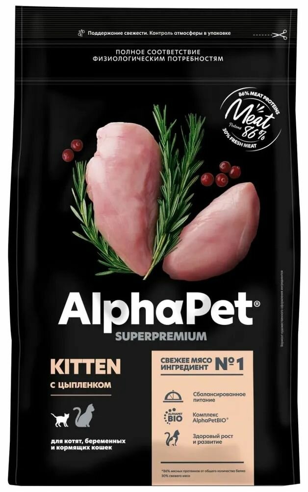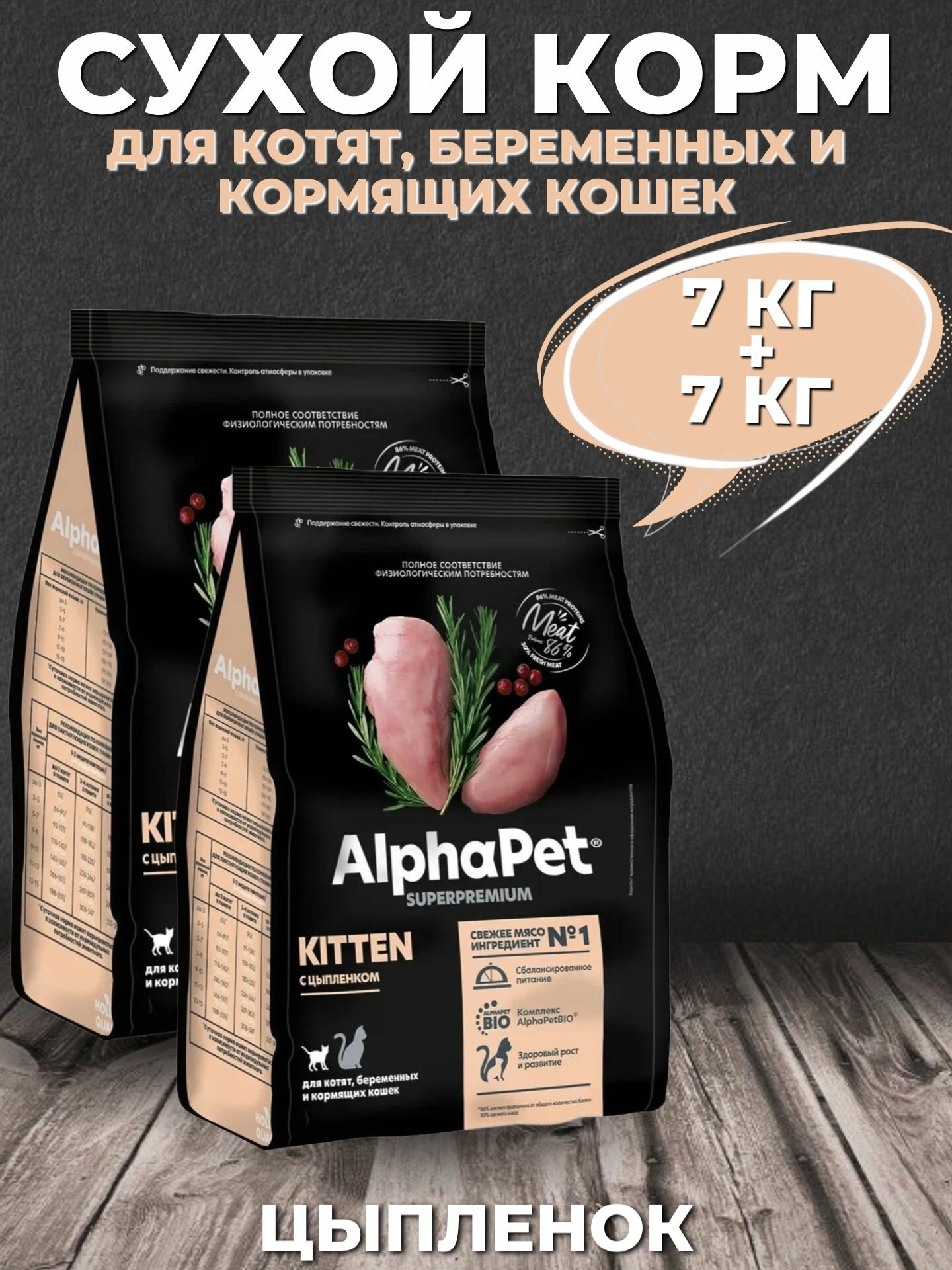 Купить AlphaPet Superpremium Kitten Сухой корм для котят, беременных и кормящих кошек Цыпленок 7 кг + 7 кг с доставкой по всей России.